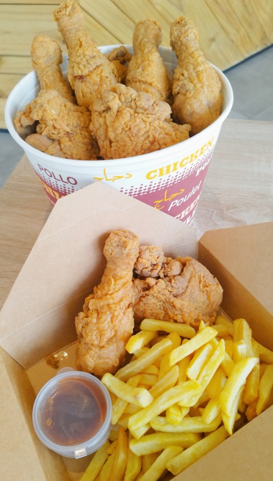 Des formules de 2 à 3 pièces 🍗 sont proposées avec frites 🍟, sauce et boisson 🥤. Pour les grandes faims ou les repas à partager, les buckets de poulet frit de 6 à 10 pièces sont parfaits 🤝
